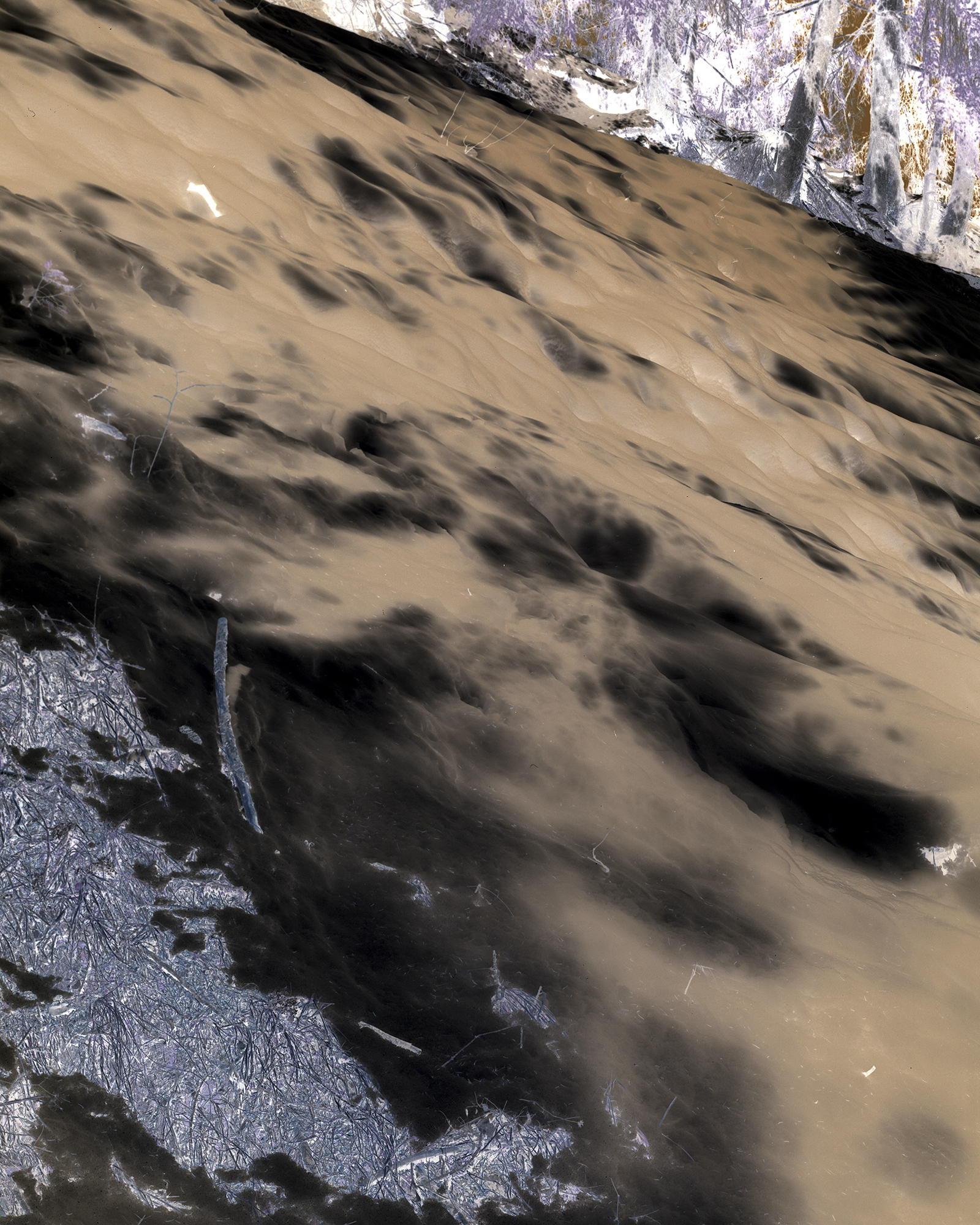 noir et blanc, lissé, tamisé. J’avance sur les mêmes chemins, les skis aux